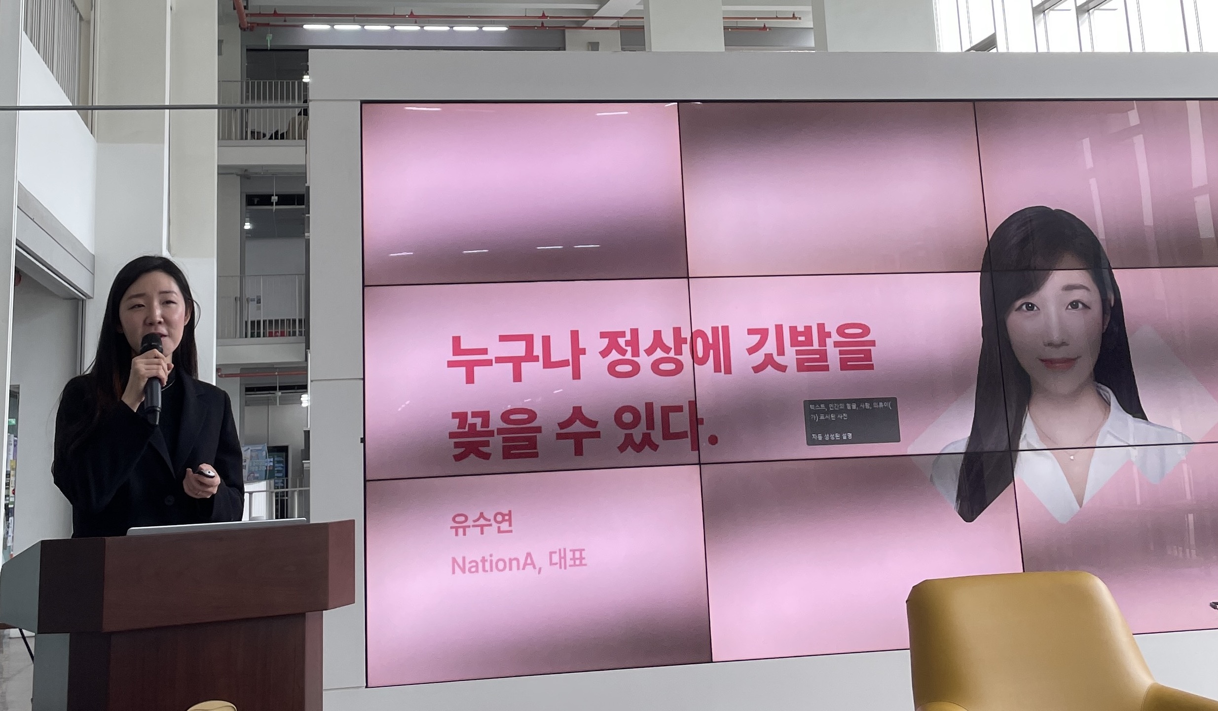 다음은 누구나 정상에 깃발을 꽂을 수 있다 라는 주제로 NationA라는 스타트업의 유수연 대표님께서 본인의 경험을 공유하는 시간을 내어주셨습니다.