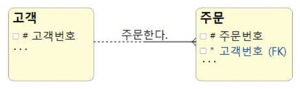 - 필수참여단계 - 그림 상 실선 (주문은 고객을 반드시 가져야 함)