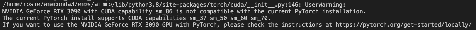 [해결] CUDA capability sm_86 is not compatible with the current PyTorch installation.